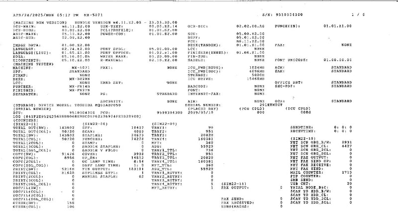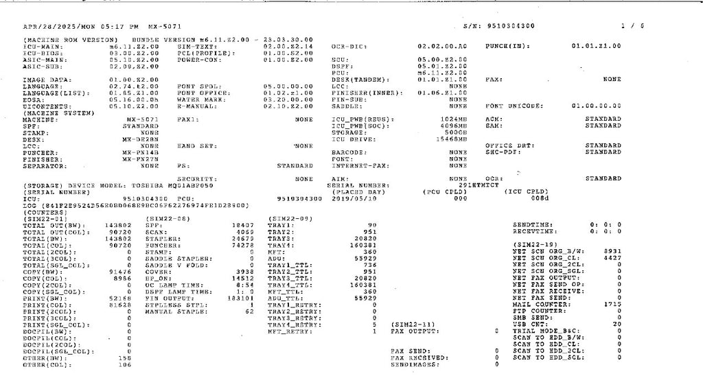 Impresora Láser SHARP MX5071 SEMINUEVO SERIE: 14411/95103043